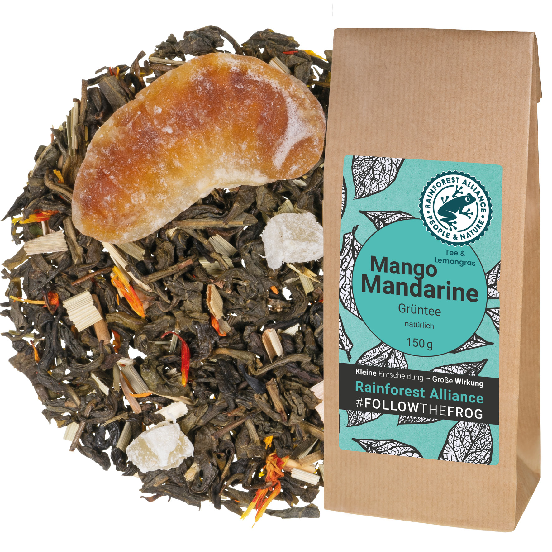 Dieser Tee bietet ein rundum gutes Gefühl. Denn liebliche Mango und fruchtige Mandarine spielen sanft mit den fein-herben Noten des Grüntees. Ein tropischer Fruchtgenuss, der die Erinnerungen an den letzten Urlaub wach werden lässt. Nun auch mit dem neuen Rainforest Alliance-Siegel